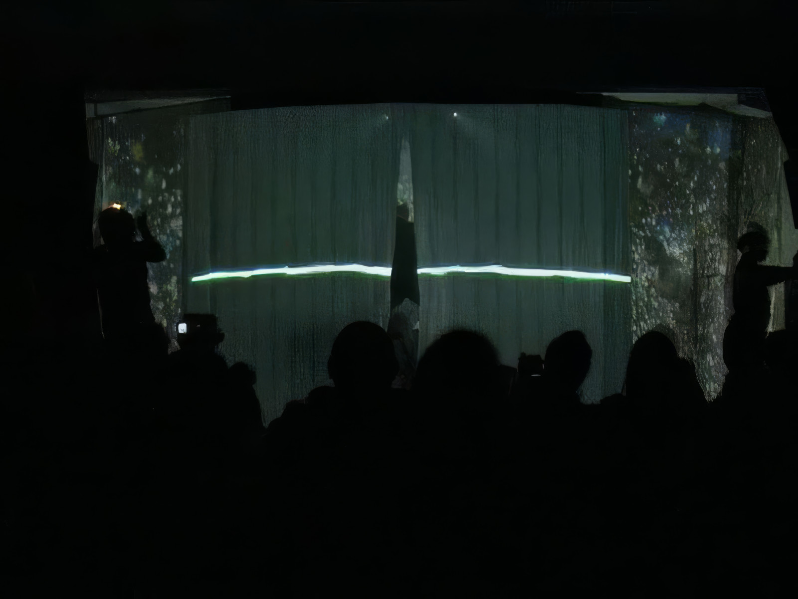 The room behind the projection screen was filled with smoke from smoke machine and small light sources