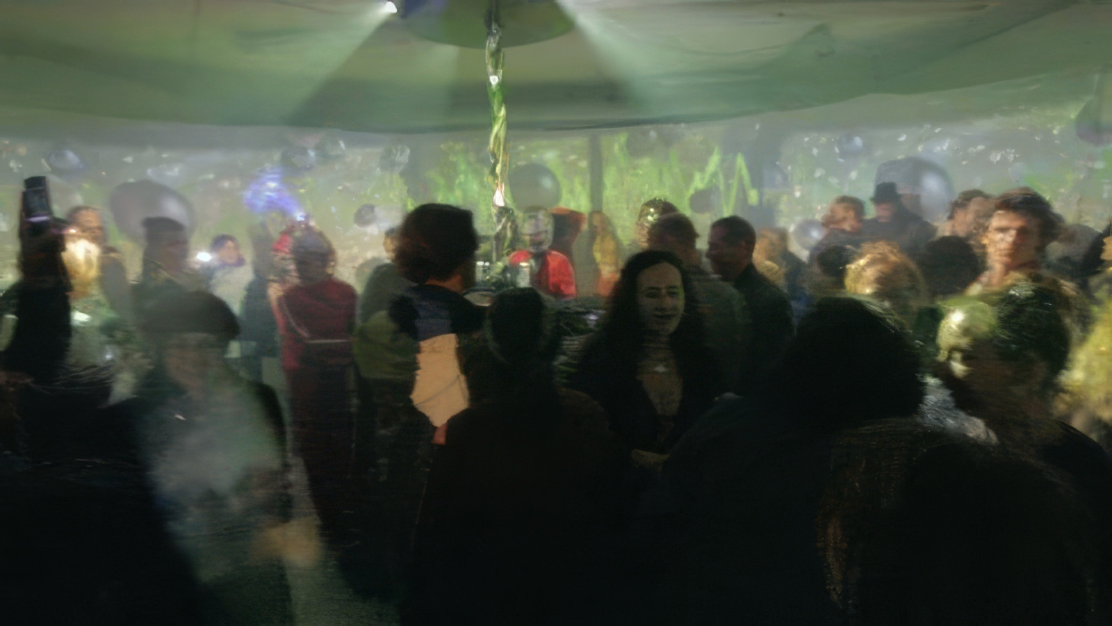 video images in an slow movement in one direction. The electronic sound scape turned in to dance music